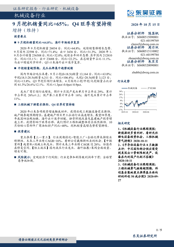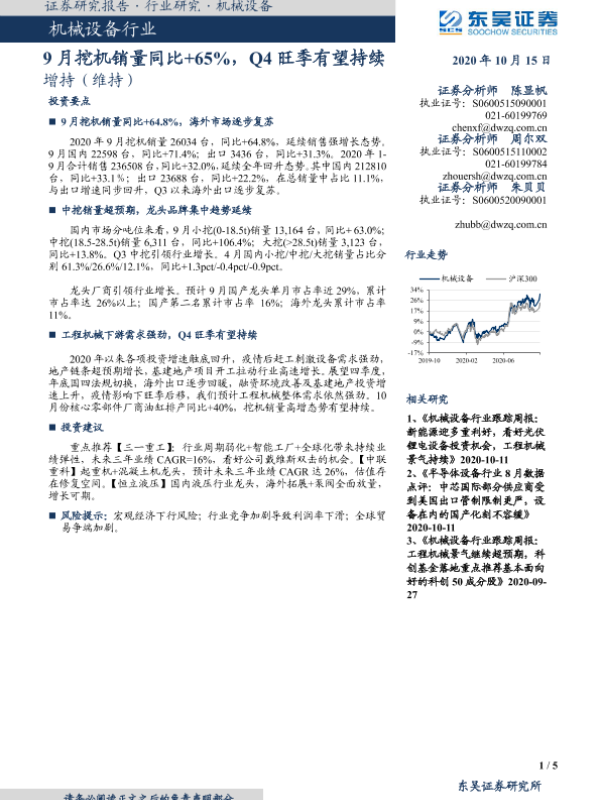 【东吴证券】【20201015】机械设备行业:9月挖机销量同比+65%,Q4旺季有望持续-5页