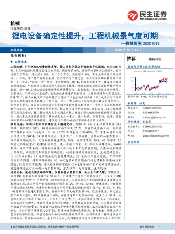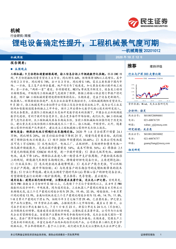 【民生证券】【20201012】20201012-民生证券-机械周报:锂电设备确定性提升,工程机械景气度可期-21页