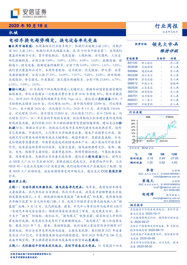 【安信证券】【20201018】20201018-安信证券-机械行业周报:电动车换电趋势确定,换电设备率先受益-21页