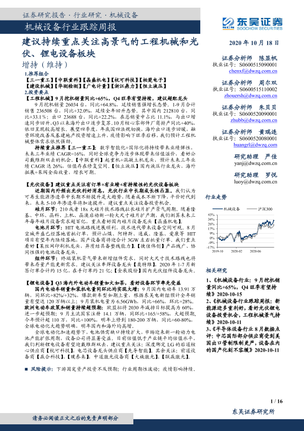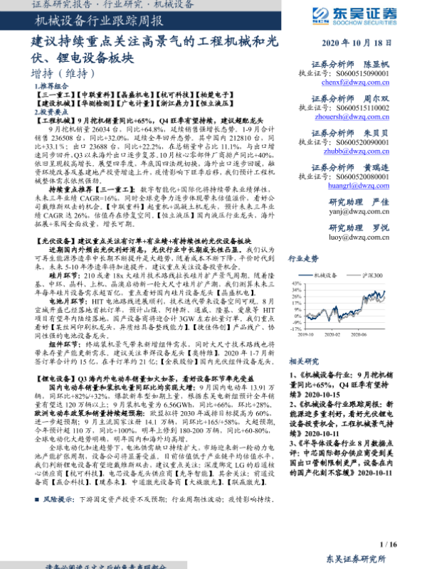 【东吴证券】【20201018】20201018-东吴证券-机械设备行业跟踪周报:建议持续重点关注高景气的工程机械和光伏、锂电设备板块-16页