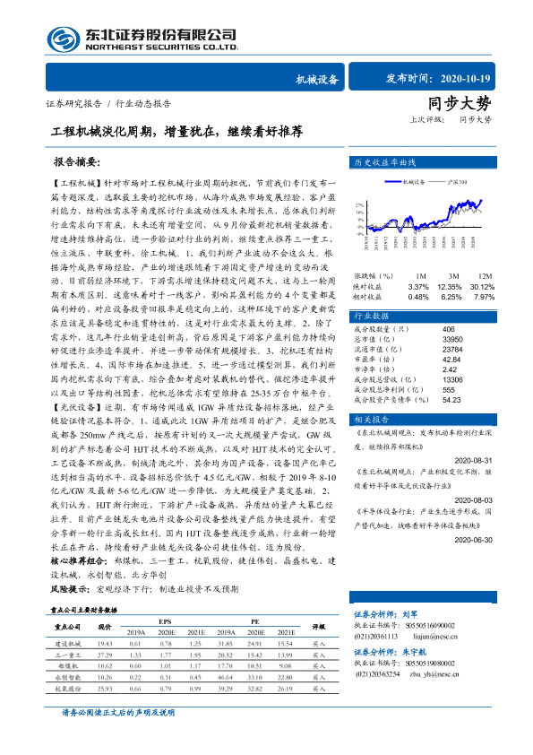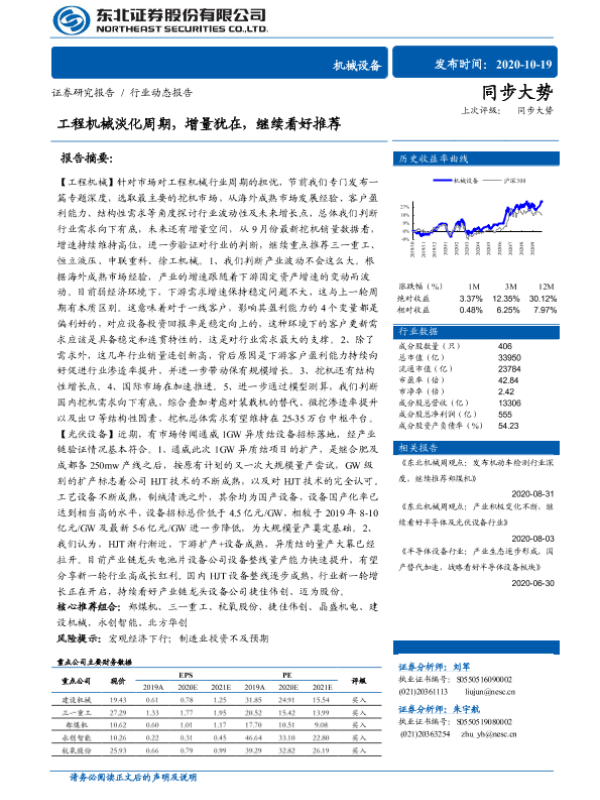 【东北证券】【20201019】机械设备行业:工程机械淡化周期,增量犹在,继续看好推荐-12页