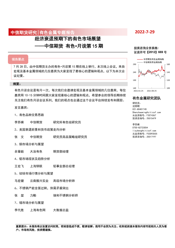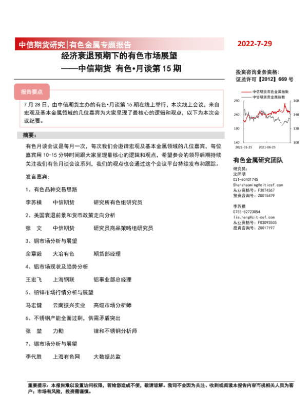 【中信期货】【20220729】经济衰退预期下的有色市场展望-16页