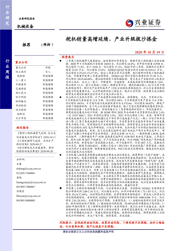 【兴业证券】【20201019】20201019-兴业证券-机械设备行业周报:挖机销量高增延续,产业升级披沙拣金-21页