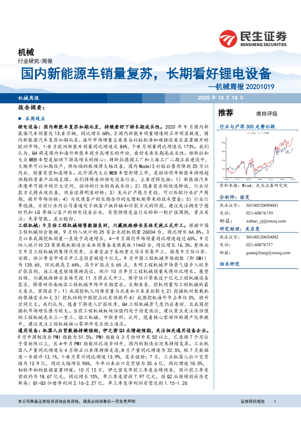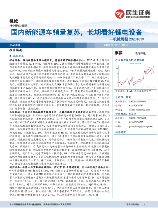 【民生证券】【20201019】国内新能源车销量复苏,长期看好锂电设备—机械周报 20201019-20页