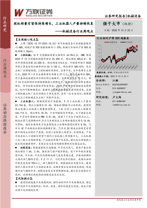 【万联证券】【20201025】20201025-万联证券-机械设备行业周观点:挖机销量有望保持高增长,工业机器人产量持续恢复-12页