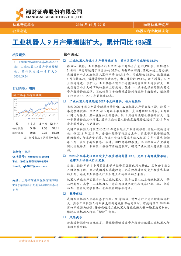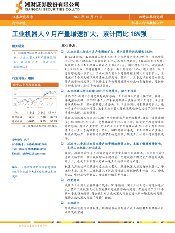 【湘财证券】【20201027】机器人行业数据点评:工业机器人9月产量增速扩大,累计同比18%强-4页