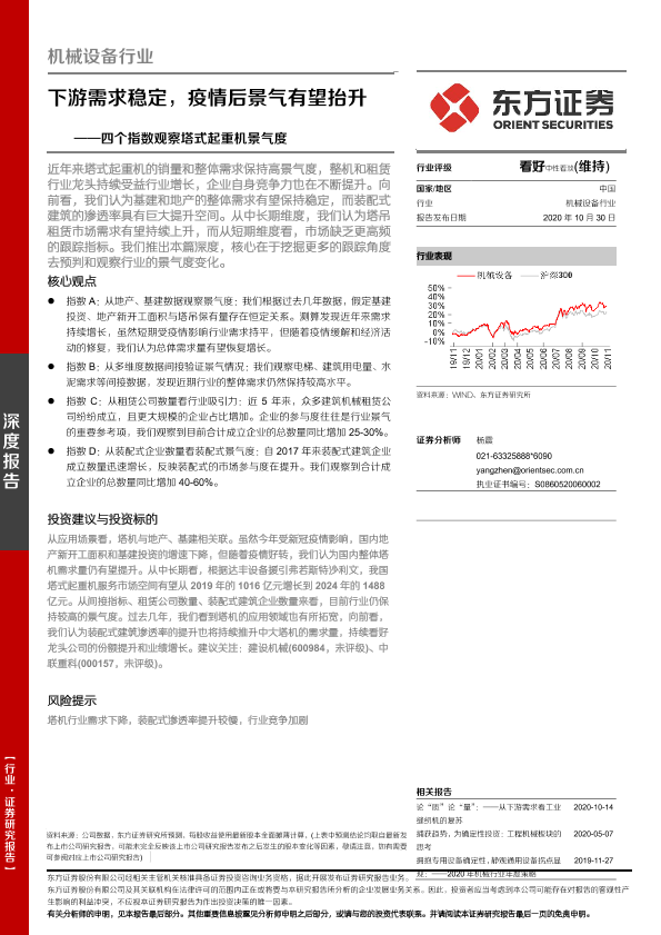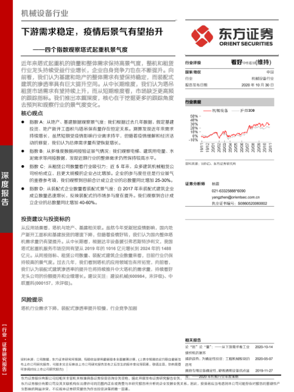 【东方证券】【20201030】机械设备行业:四个指数观察塔式起重机景气度:下游需求稳定,疫情后景气有望抬升-27页