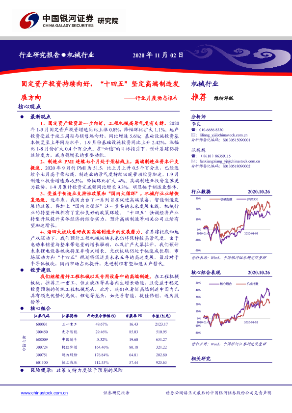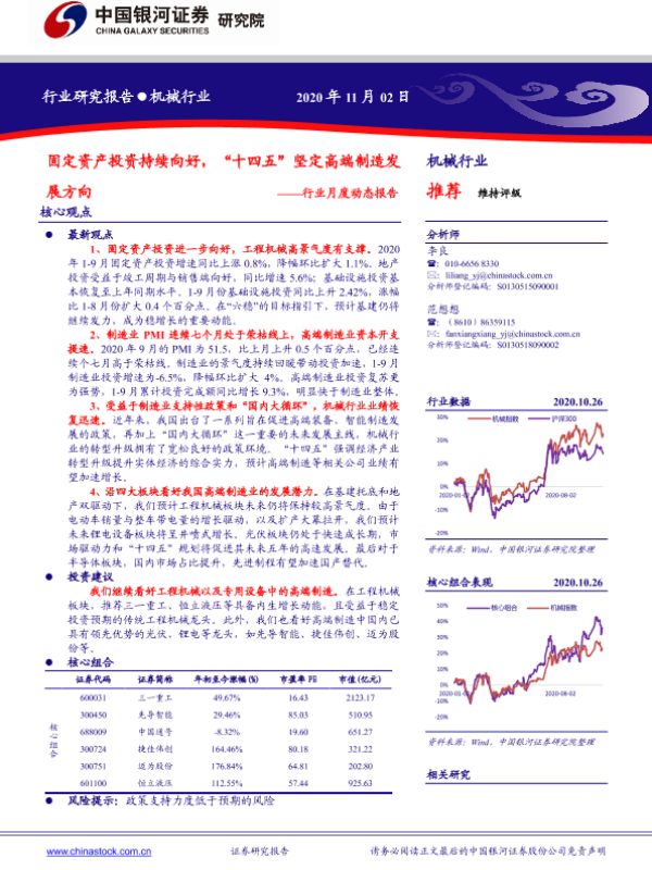 【银河证券】【20201102】20201102-中国银河-机械行业月度动态报告:固定资产投资持续向好,“十四五”坚定高端制造发展方向-30页