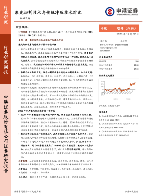 【申港证券】【20201102】20201102-申港证券-机械设备行业研究周报:激光切割技术与传统冲压技术对比-15页