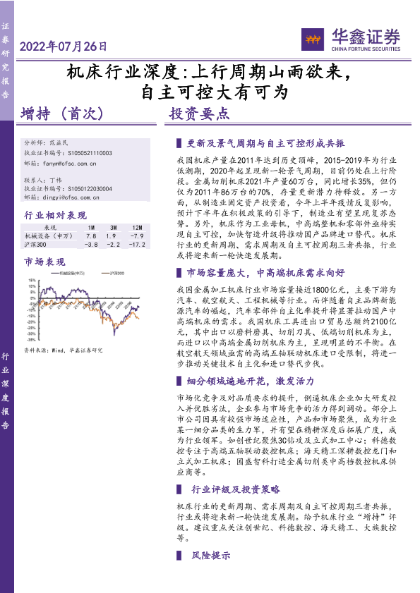 【华鑫证券】【20220726】机床行业深度:上行周期山雨欲来,自主可控大有可为-33页