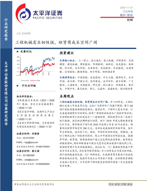 【太平洋证券】【20201107】20201107-太平洋-机械行业周报:工程机械需求韧性强,租赁商成长空间广阔-14页
