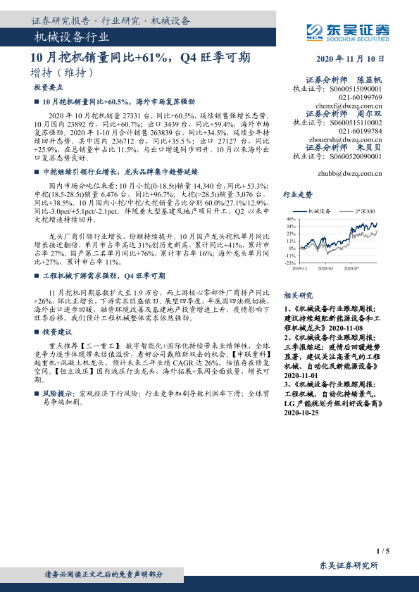 【东吴证券】【20201110】机械设备行业:10月挖机销量同比+61%,Q4旺季可期-5页