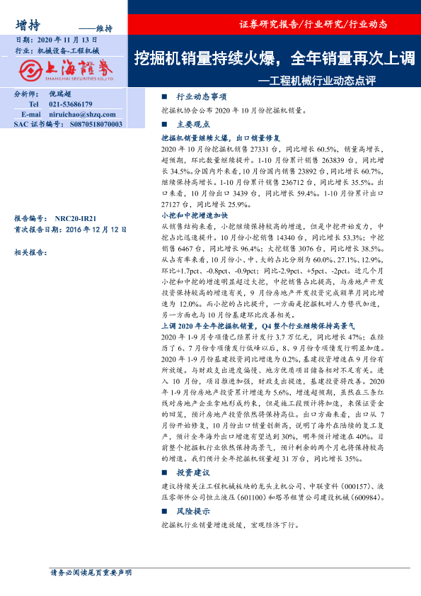 【上海证券】【20201113】20201113-上海证券-工程机械行业动态点评:挖掘机销量持续火爆,全年销量再次上调-2页