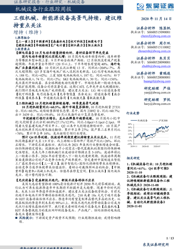 【东吴证券】【20201114】20201114-东吴证券-机械设备行业跟踪周报:工程机械、新能源设备高景气持续,建议维持重点关注-13页