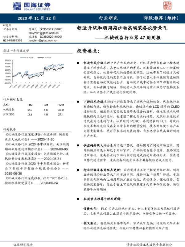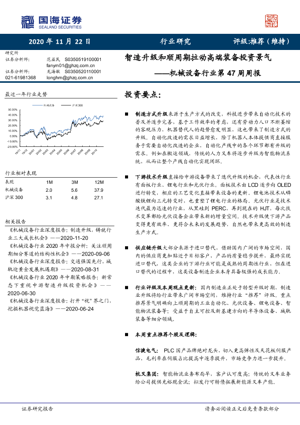 【国海证券】【20201122】机械设备行业第47周周报:智造升级和顺周期拉动高端装备投资景气-19页