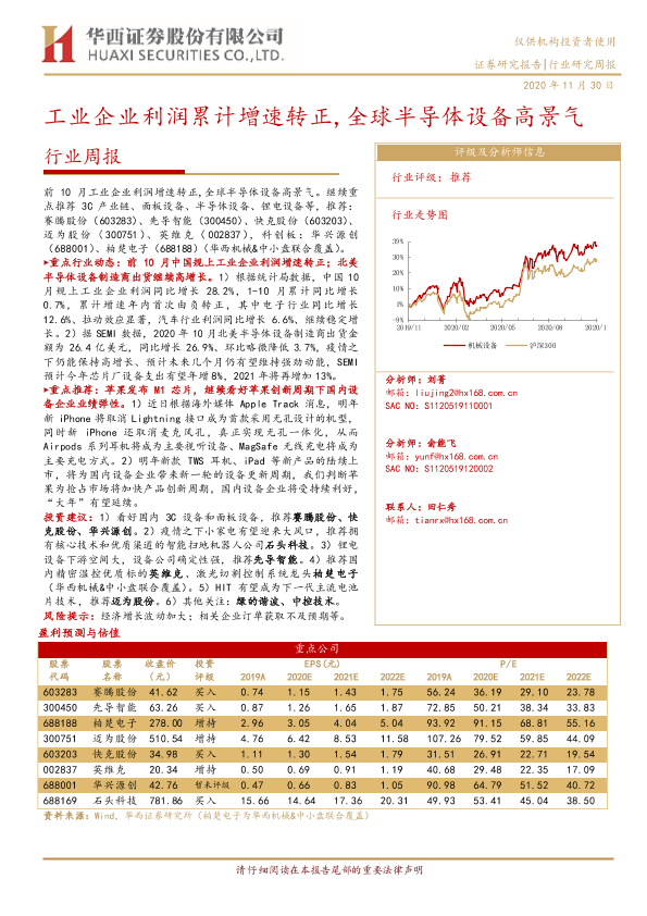 【华西证券】【20201130】20201130-华西证券-机械设备行业周报:工业企业利润累计增速转正,全球半导体设备高景气-20页