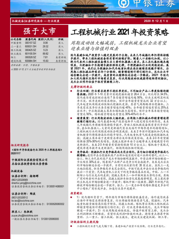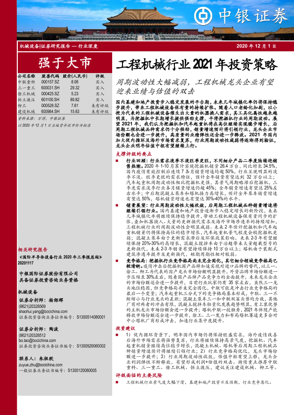 【中银证券】【20201201】工程机械行业2021年投资度策略:周期波动性大幅减弱,工程机械龙头企业有望迎来业绩与估值的双击-22页