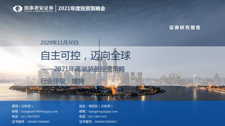 【国泰君安证券】【20201130】2021年高端装备投资策略:自主可控,迈向全球-41页