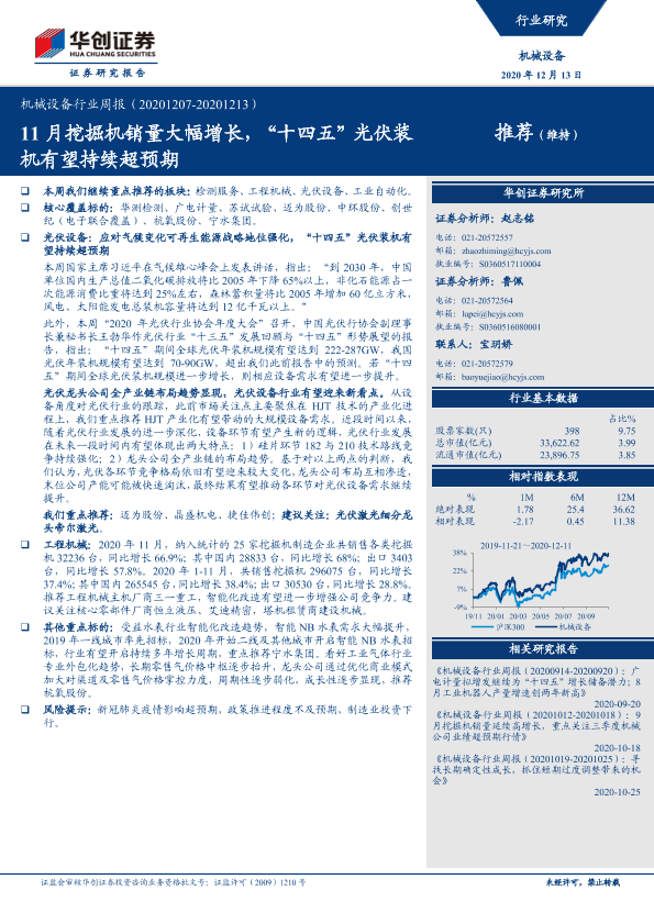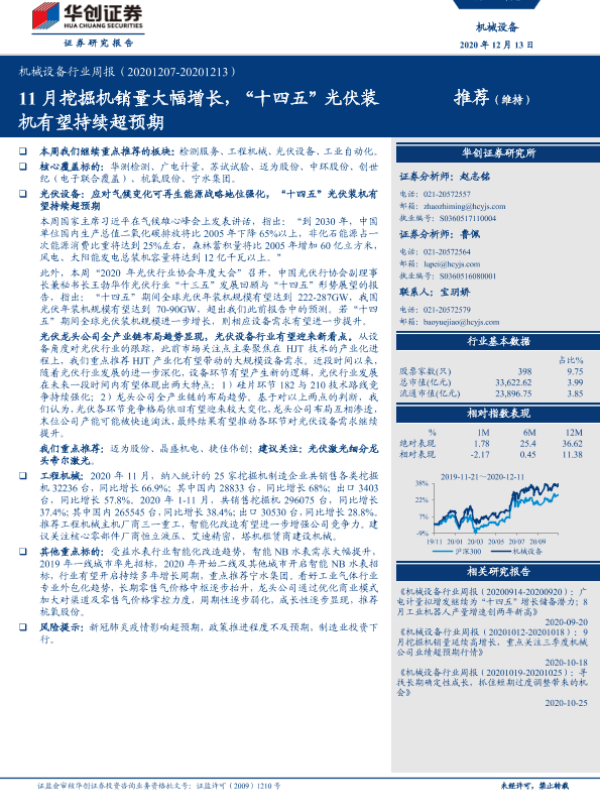 【华创证券】【20201213】20201213-华创证券-机械设备行业周报:11月挖掘机销量大幅增长,“十四五”光伏装机有望持续超预期-11页