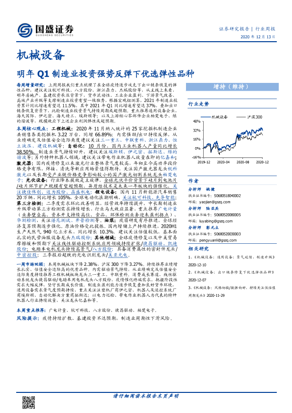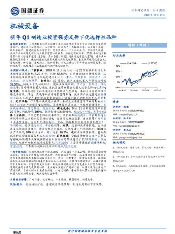 【国盛证券】【20201213】20201213-国盛证券-机械设备行业周报:明年Q1制造业投资强势反弹下优选弹性品种-10页