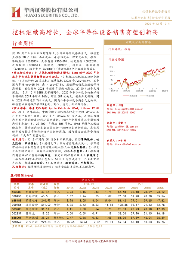 【华西证券】【20201213】20201213-华西证券-机械行业周报:挖机继续高增长,全球半导体设备销售有望创新高-21页