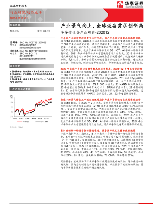 【华泰证券】【20201216】20201216-华泰证券-半导体设备产业观察:产业景气向上,全球设备需求创新高-5页