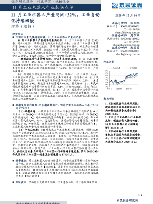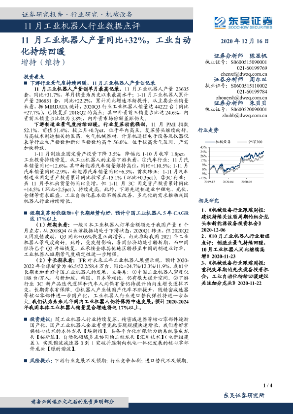 【东吴证券】【20201216】11月工业机器人行业数据点评:11月工业机器人产量同比+32%,工业自动化持续回暖-4页
