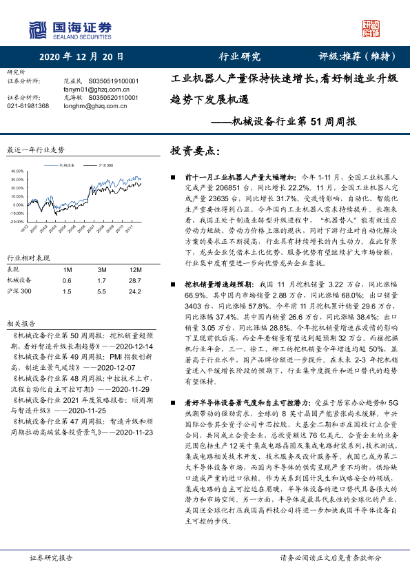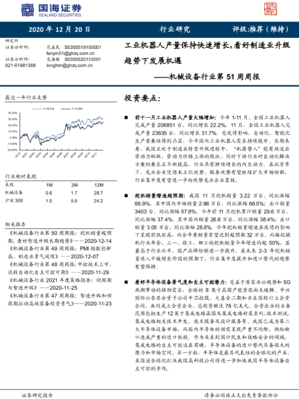 【国海证券】【20201220】机械设备行业第51周周报:工业机器人产量保持快速增长,看好制造业升级趋势下发展机遇-20页