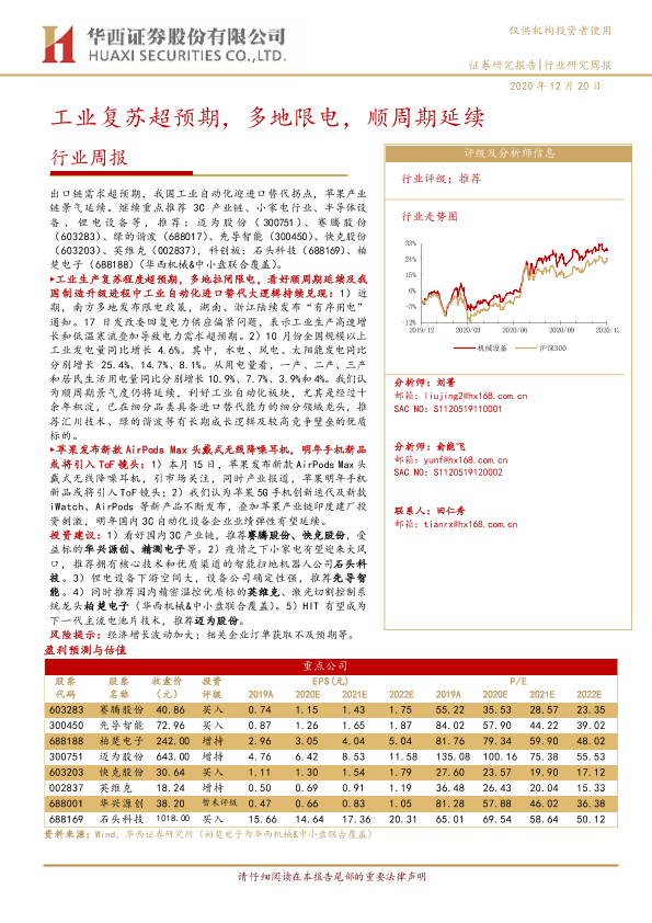 【华西证券】【20201220】20201220-华西证券-机械行业周报:工业复苏超预期,多地限电,顺周期延续-21页