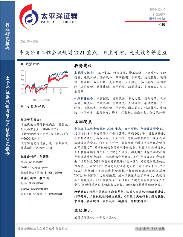 【太平洋证券】【20201221】机械行业周报:中央经济工作会议规划2021重点,自主可控、光伏设备等受益-12页
