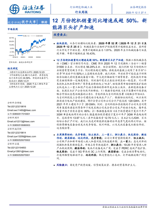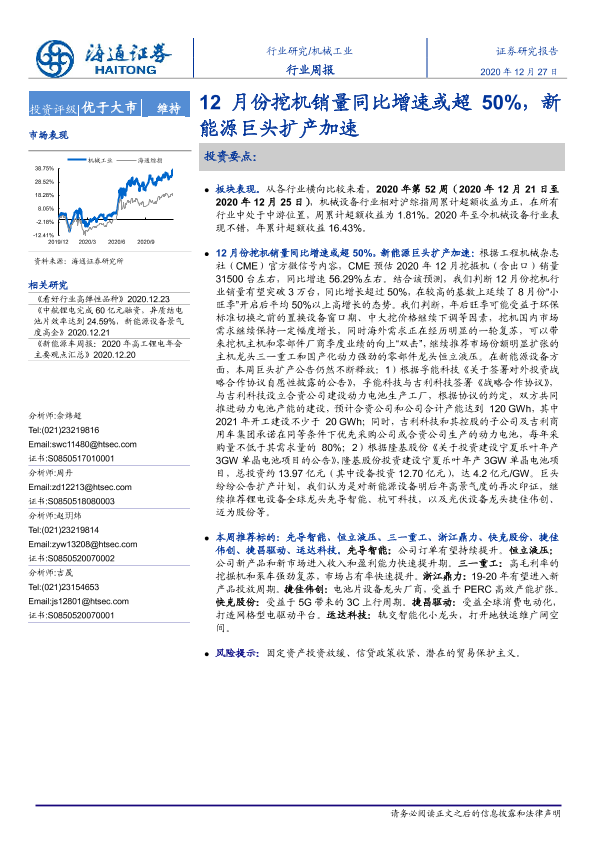 【海通证券】【20201227】20201227-海通证券-机械工业行业周报:12月份挖机销量同比增速或超50%,新能源巨头扩产加速-10页