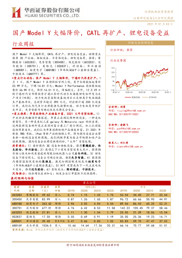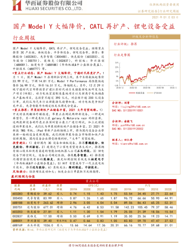【华西证券】【20210103】20210103-华西证券-机械行业周报:国产Model Y大幅降价,CATL再扩产、锂电设备受益-20页