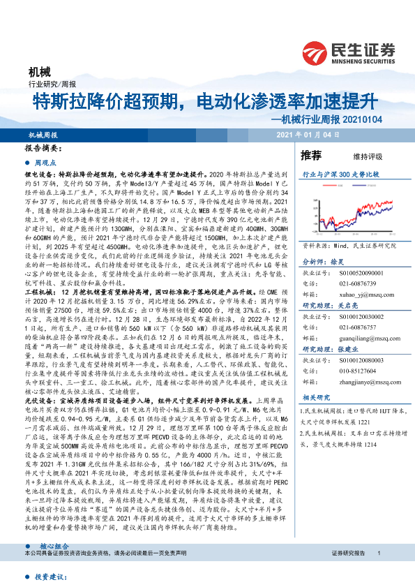 【民生证券】【20210104】20210104-民生证券-机械行业周报:特斯拉降价超预期,电动化渗透率加速提升-22页