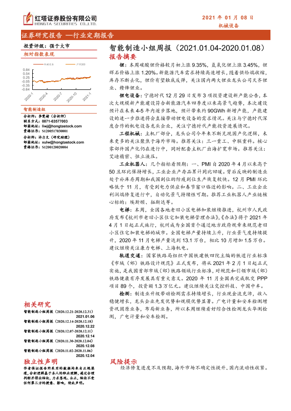 【红塔证券】【20210108】20210108-红塔证券-机械设备行业:智能制造小组周报-16页