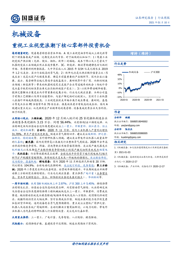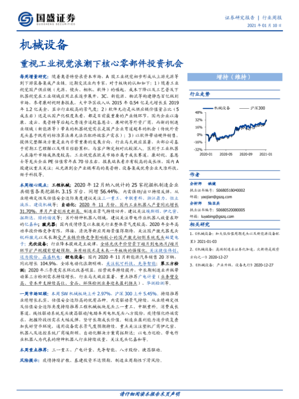 【国盛证券】【20210110】20210110-国盛证券-机械设备行业周报:重视工业视觉浪潮下核心零部件投资机会-11页