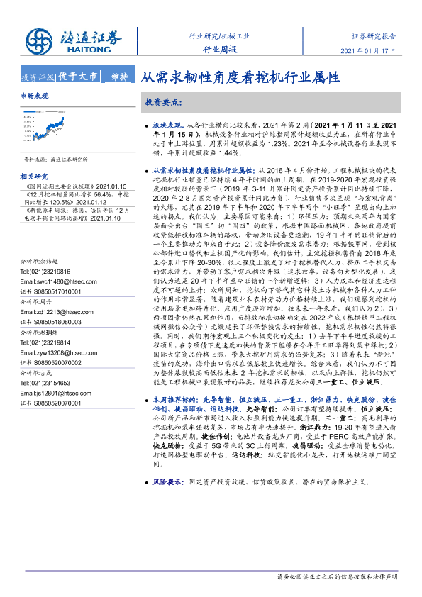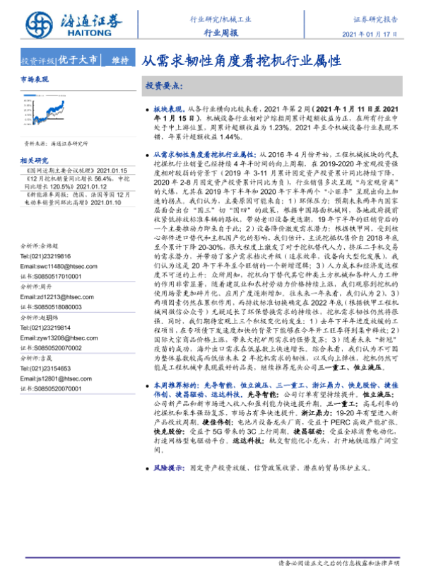 【海通证券】【20210117】20210117-海通证券-机械工业行业周报:从需求韧性角度看挖机行业属性-10页