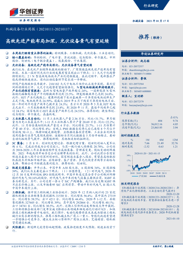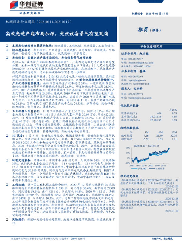 【华创证券】【20210117】20210117-华创证券-机械设备行业周报:高效先进产能布局加深,光伏设备景气有望延续-11页