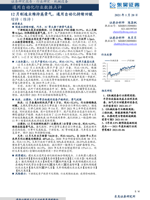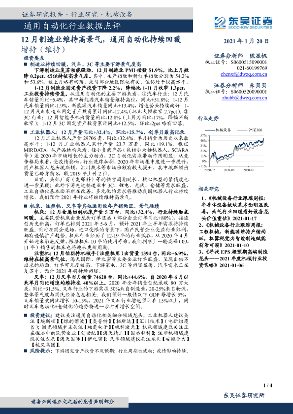 【东吴证券】【20210120】通用自动化行业数据点评:12月制造业维持高景气,通用自动化持续回暖-4页