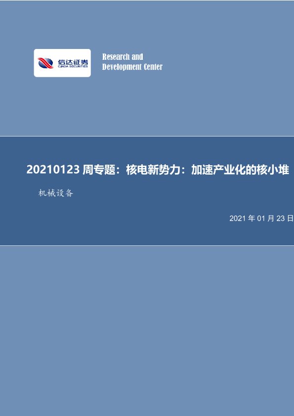 【信达证券】【20210123】20210123-信达证券-机械设备周专题:核电新势力:加速产业化的核小堆-15页