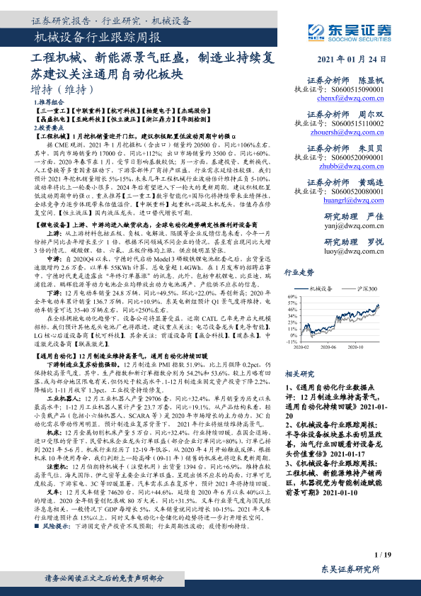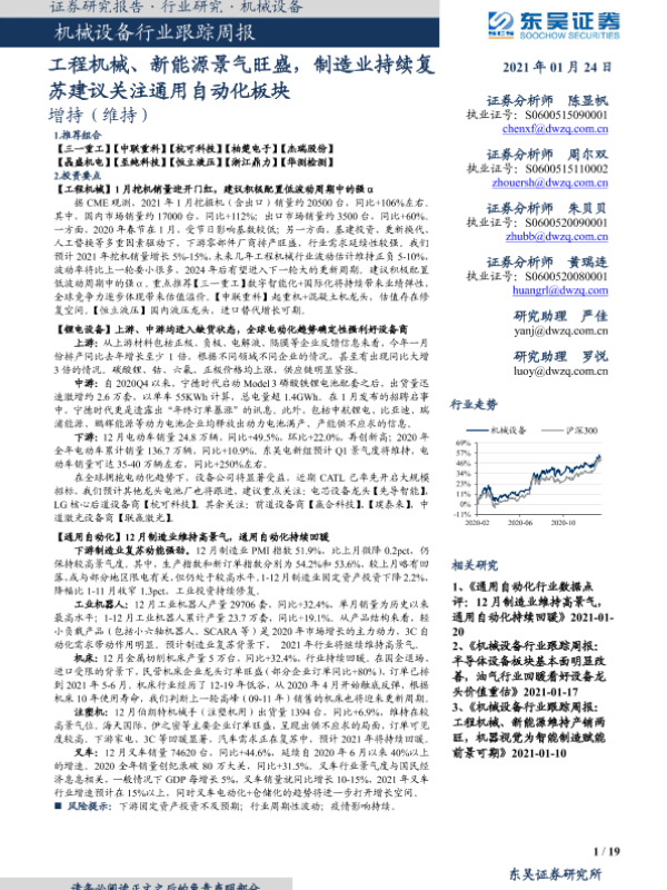 【东吴证券】【20210124】20210124-东吴证券-机械设备行业跟踪周报:工程机械、新能源景气旺盛,制造业持续复苏建议关注通用自动化板块-19页