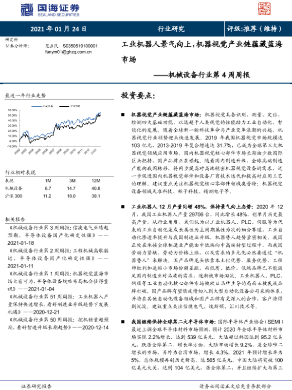 【国海证券】【20210124】机械设备行业第4周周报:工业机器人景气向上,机器视觉产业链蕴藏蓝海市场-21页