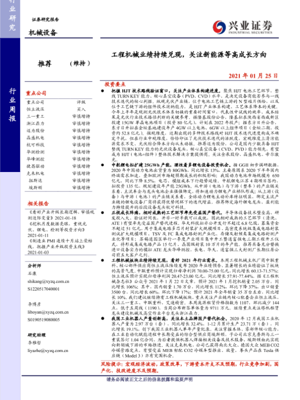 【兴业证券】【20210125】20210125-兴业证券-机械设备行业周报:工程机械业绩持续兑现,关注新能源等高成长方向-21页