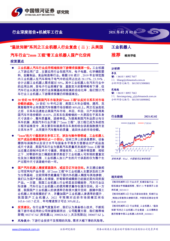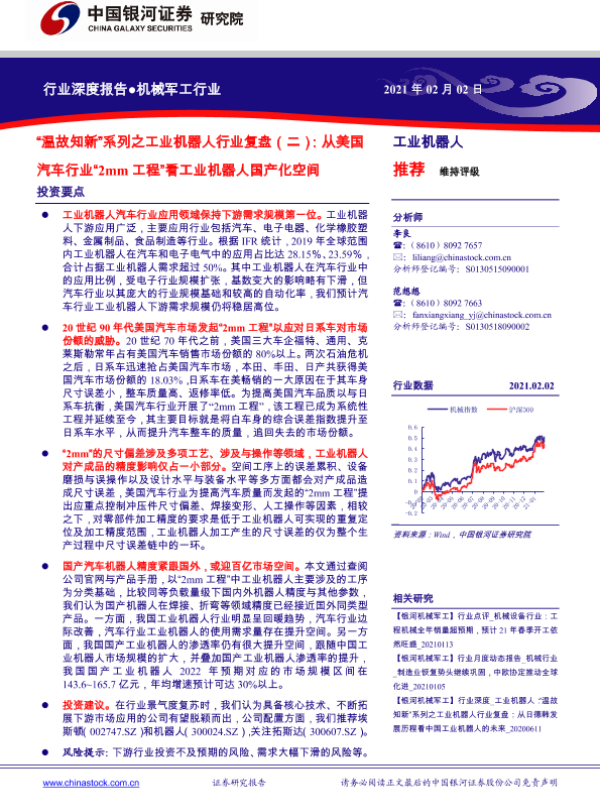 【银河证券】【20210202】机械军工行业:“温故知新”系列之工业机器人行业复盘(二):从美国汽车行业“2mm工程”看工业机器人国产化空间-38页