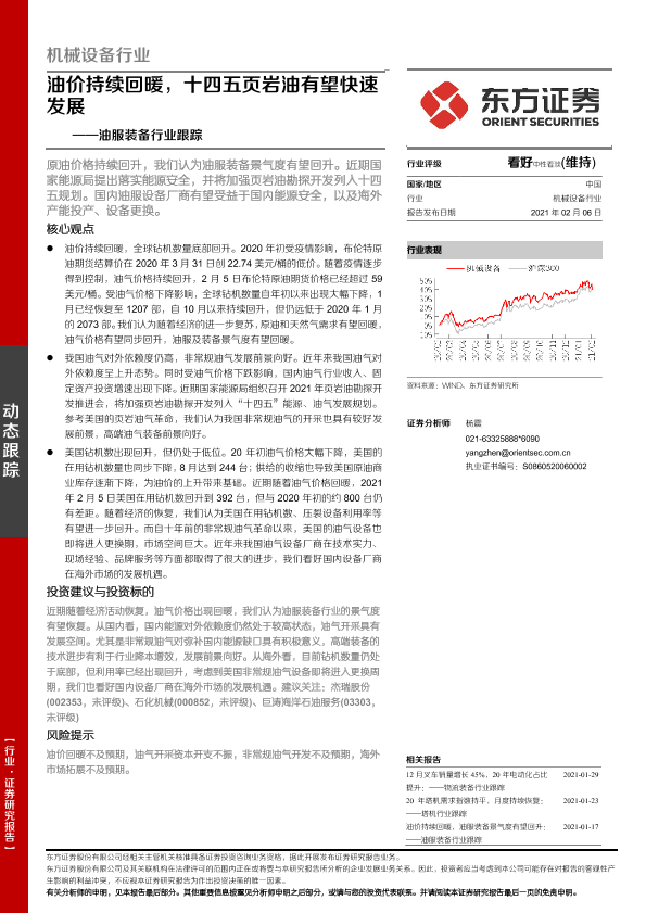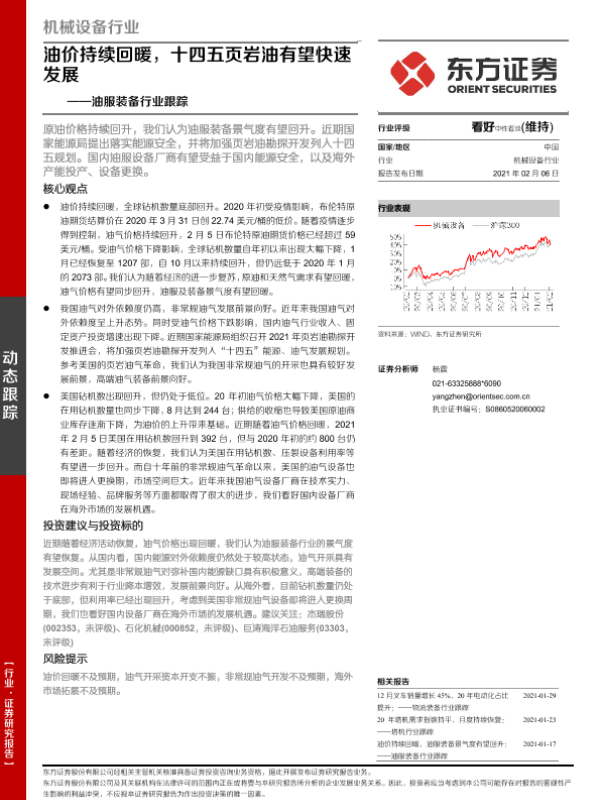 【东方证券】【20210206】油服装备行业跟踪:油价持续回暖,十四五页岩油有望快速发展-9页