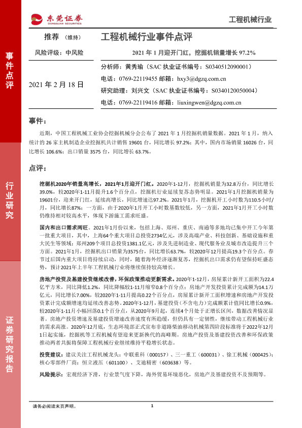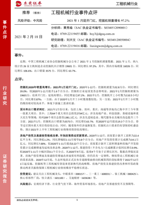 【东莞证券】【20210218】2021年1月迎开门红,挖掘机销量增长97.2%-3页