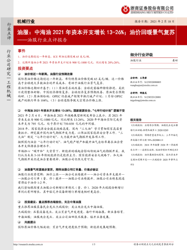 【浙商证券】【20210218】油服:中海油2021年资本开支增长13-26%;油价回暖景气复苏-3页