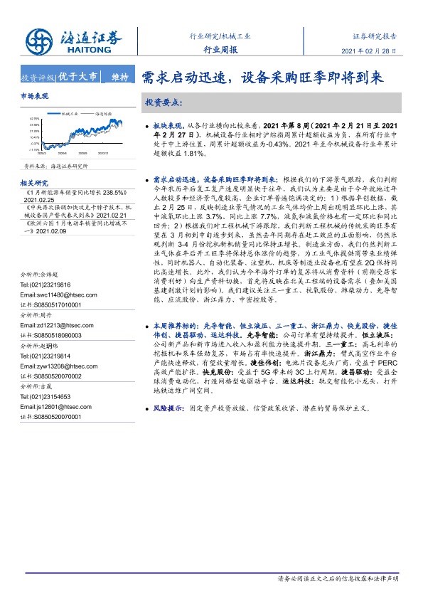 【海通证券】【20210228】机械工业行业周报:需求启动迅速,设备采购旺季即将到来-10页