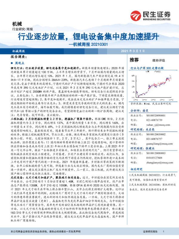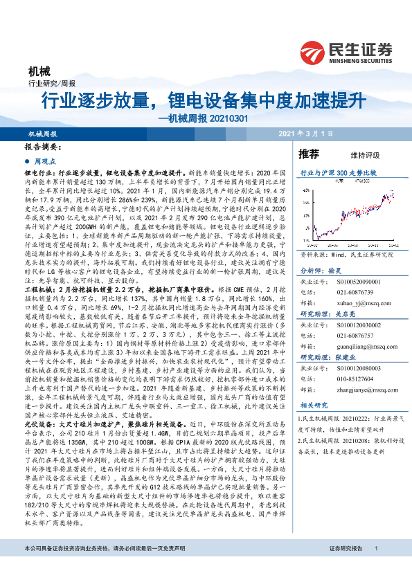 【民生证券】【20210301】机械周报:行业逐步放量,锂电设备集中度加速提升-23页