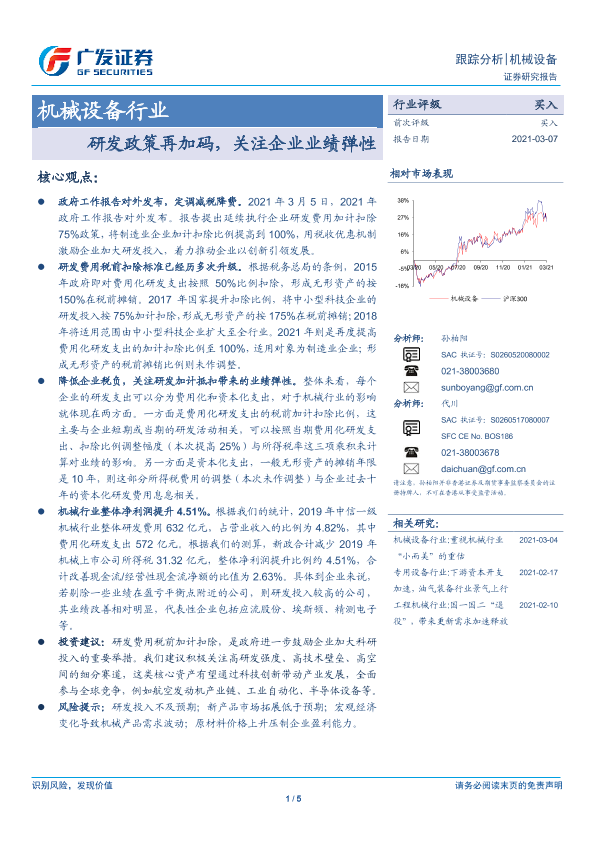 【广发证券】【20210307】机械设备行业:研发政策再加码,关注企业业绩弹性-5页