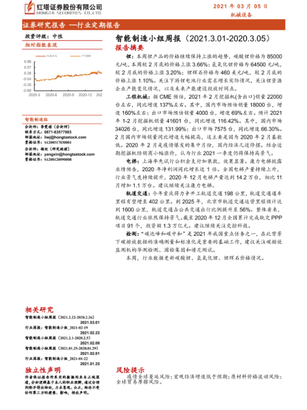 智能制造 机械设备 电梯市场 轨道交通 锂产品价格